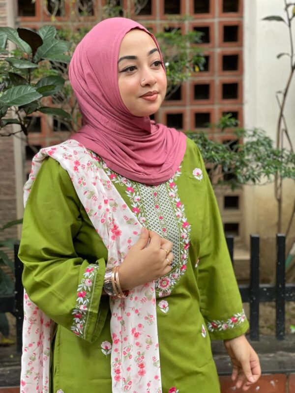 A jersey cotton hijab is loved for its incredible comfort and stretch. Made from soft, breathable cotton blended with a touch of spandex, this fabric drapes beautifully without needing constant pins or adjustments. Its slightly weighty texture helps it stay in place all day, making it perfect for everyday wear, work, or travel.